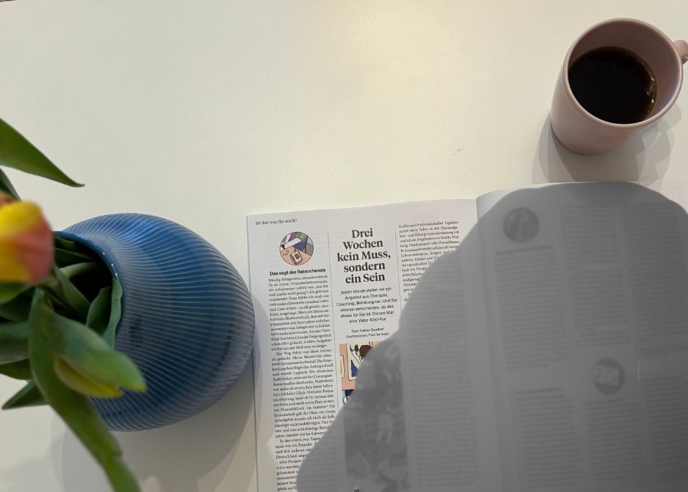 Ständig Alltagsstress, niemals endende To-do-Listen, Vereinbarkeitsversuche, ein anhaltendes Gefühl von „Ich bin und mache nicht genug“: Als getrennt erziehender Vater fühlte ich mich wie viele andere Elternteile zwischen Lohn- und Care-Arbeit – zu oft gereizt, zweifelnd, ausgelaugt. Mein seit Jahren anhaltender Bluthochdruck, dem mit Medikamenten und Sport allein nicht beizukommen war, belegte mir in Zahlen: Ich brauche eine Auszeit. An eine Vater-Kind-Kur hatte ich in der Vergangenheit schon öfter gedacht. Andere Aufgaben erschienen mir bloß stets wichtiger.